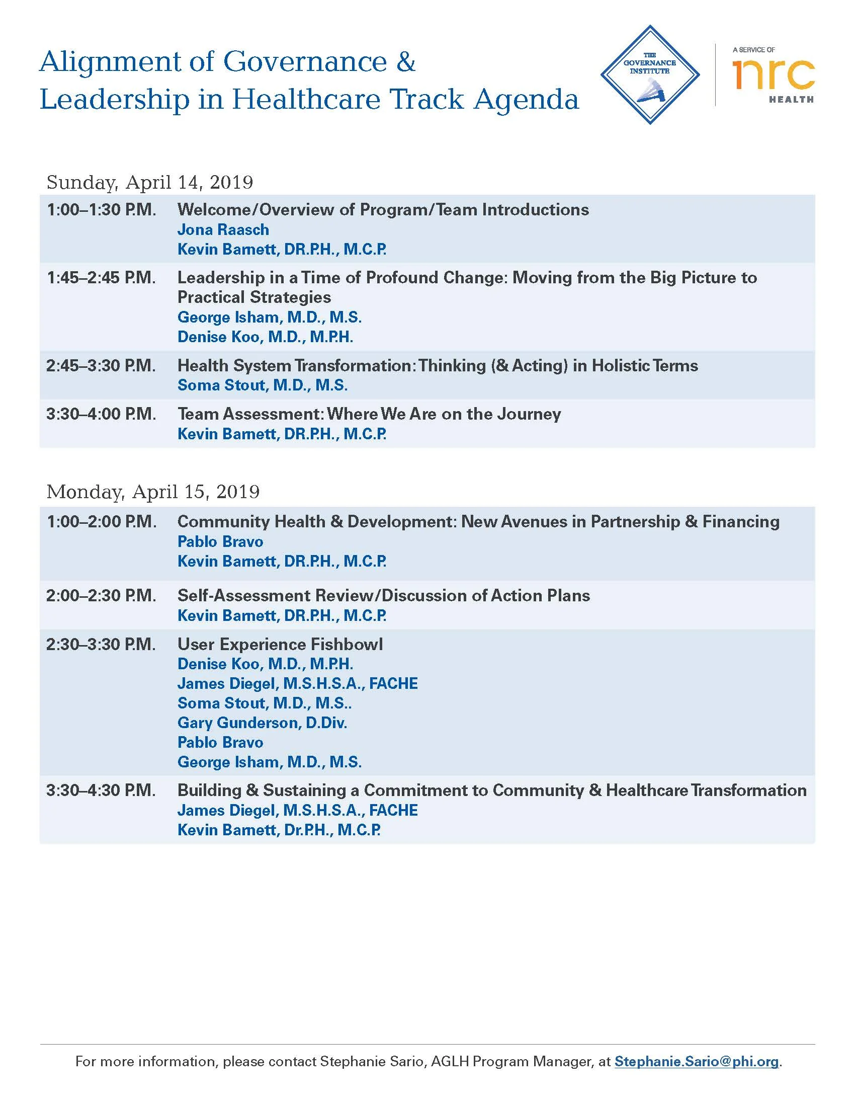 Join Us in April 2019 at The Governance Institute's Leadership Conference's AGLH Track
